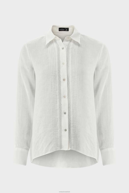 een elegant getailleerd overhemd met een licht uitlopende zoom, lange mouwen, plooien aan de voorkant en kanten inzetstukken, gemaakt van eenvoudige katoenen batist. perfect voor casual gelegenheden en chique evenementen.