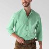 Het witte overhemd met geruite biesdetails aan de binnenkant van de opstaande kraag, is de luxe keuze voor je outfit. gemaakt van hoogwaardige en zachte oxford-stof, het is een van de mooiste overhemden op de markt. de traditionele opstaande kraag en knopen van echt hoornen maken de traditionele en toch nobele look compleet. gecombineerd met lederhosen, een jasje en een traditioneel gilet valt dit overhemd echt op.
