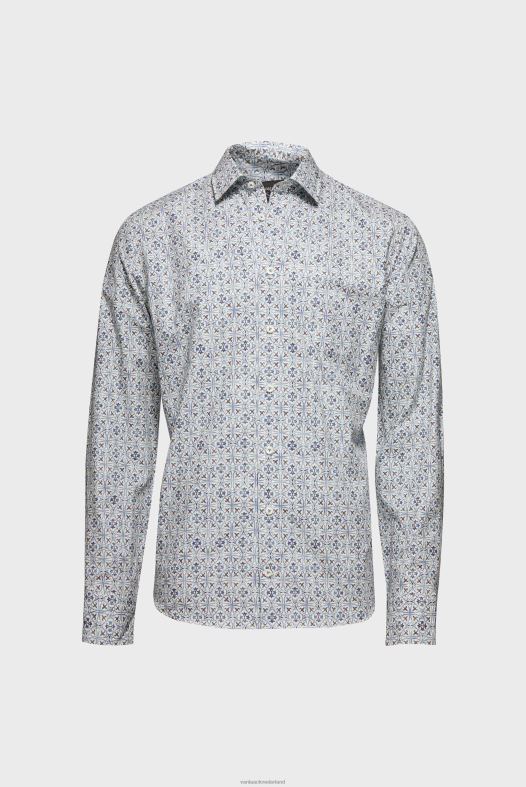 Het zomerse poplin overhemd met Provençaalse tegelprint heeft een stijlvolle kentkraag en een slim fit voor een moderne look. de hoogwaardige afwerking is te herkennen aan de uitgebreide binnennaden, zijnaden en met de hand gestikte naden.